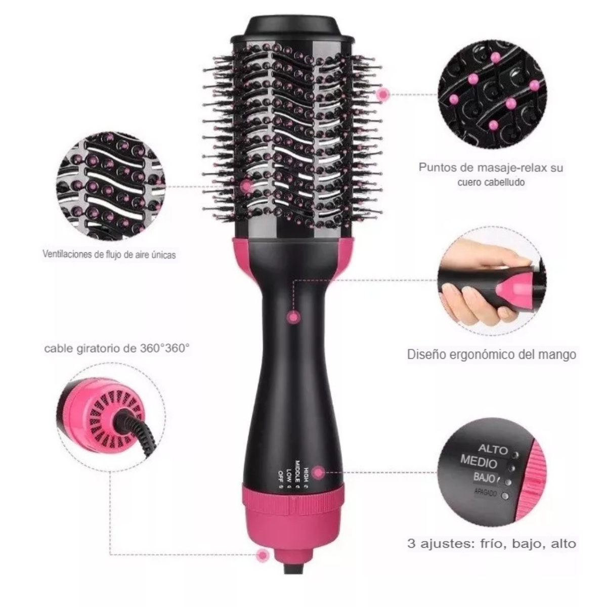 👩🦰 Cepillo 3 en 1 Peina - Seca - Alisa